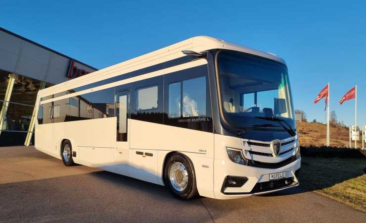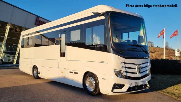 Morelo Grand Empire L är byggd på MB:s nya chassi från Lirpa som är en sorts lågnivåvariant anpassat för kommande elmotorer och batteripack. Testexemplaret har dock MB Actros 12,8 liters dieselsexa. Som standard levereras modellen med Morelos premiumpaket där tyngdtäcken, fluffig morgonrock och elvärmda knätofflor ingår.