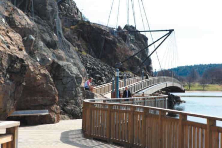 "Uddevalla kommun och dess projektledare har skapat en länge saknad förbindelse mellan staden och dess fritidsområden och oväntat kommit på att göra det längs stadens otillgängliga bergssidor. Det till synes omöjliga har man gjort möjligt genom gångförbindelsen i form av en träbro som organiskt följer bergets form och länkar samman staden med attraktiva badplatser och kusten i söder. Konstruktionen, ett samspel mellan trä och stål, ger med sin spektakulära upphängning en dramatik, som uppskattas av Uddevallaborna. De kan nu tryggt och utan strapatser njuta av ett mycket frekventerat promenadstråk med sköna vyer mot Byfjorden och med Uddevallabron i horisonten. Genom denna gånglänk minskar behovet att använda bil för att ta sig från staden till fritidsområdena. Strandpromenaden är ett sådant projekt, som när det är genomfört framstår som självklart, men som krävt ett kreativt tänkande för att aktualiseras."