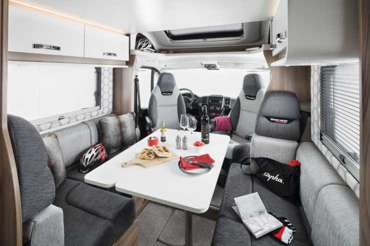 Den nya invändiga designen med ny Alcantaraliknande klädsel, högglansiga snickerier och en köksskiva i kompositmaterial ger ett funktionellt och mycket bra helhetsintryck. Nya klädseln som är standard i 2018 års 700-serie ser vid första anblicken känslig ut men den är raka motsatsen, det specialkonstruerade materialet står emot de mest aggressiva fläckarna. Eventuella fläckar sägs enkelt kunna tas bort med en vanlig våtservett.