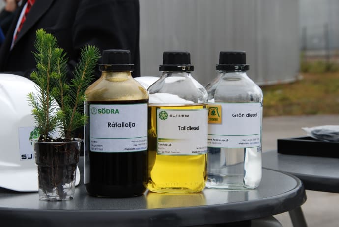 Största andelen av ett drivmedels klimatpåverkan ligger oftast i markberedning och odling av den ursprungliga råvaran. En viktig fördel med den tallolja som används är att den ger mycket lite nettoutsläpp av växthusgaser, eftersom den är en restprodukt som blir över från massabruken med begränsade möjligheter till annan användning. Just nu pågår dessutom flera andra projekt för att se hur man i ännu högre grad ska kunna ta tillvara på andra restprodukter från skogen som lignin, sågspån, grenar och toppar.