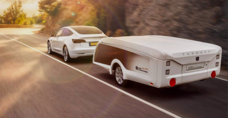 590 kilo och uppfällbar, det är konceptet för Easy Caravanning TakeOff som är en korsning mellan en husvagn och en tältvagn. Med låg vikt är den dessutom lämplig efter mindre dragbilar eller bilar med ren eldrift.