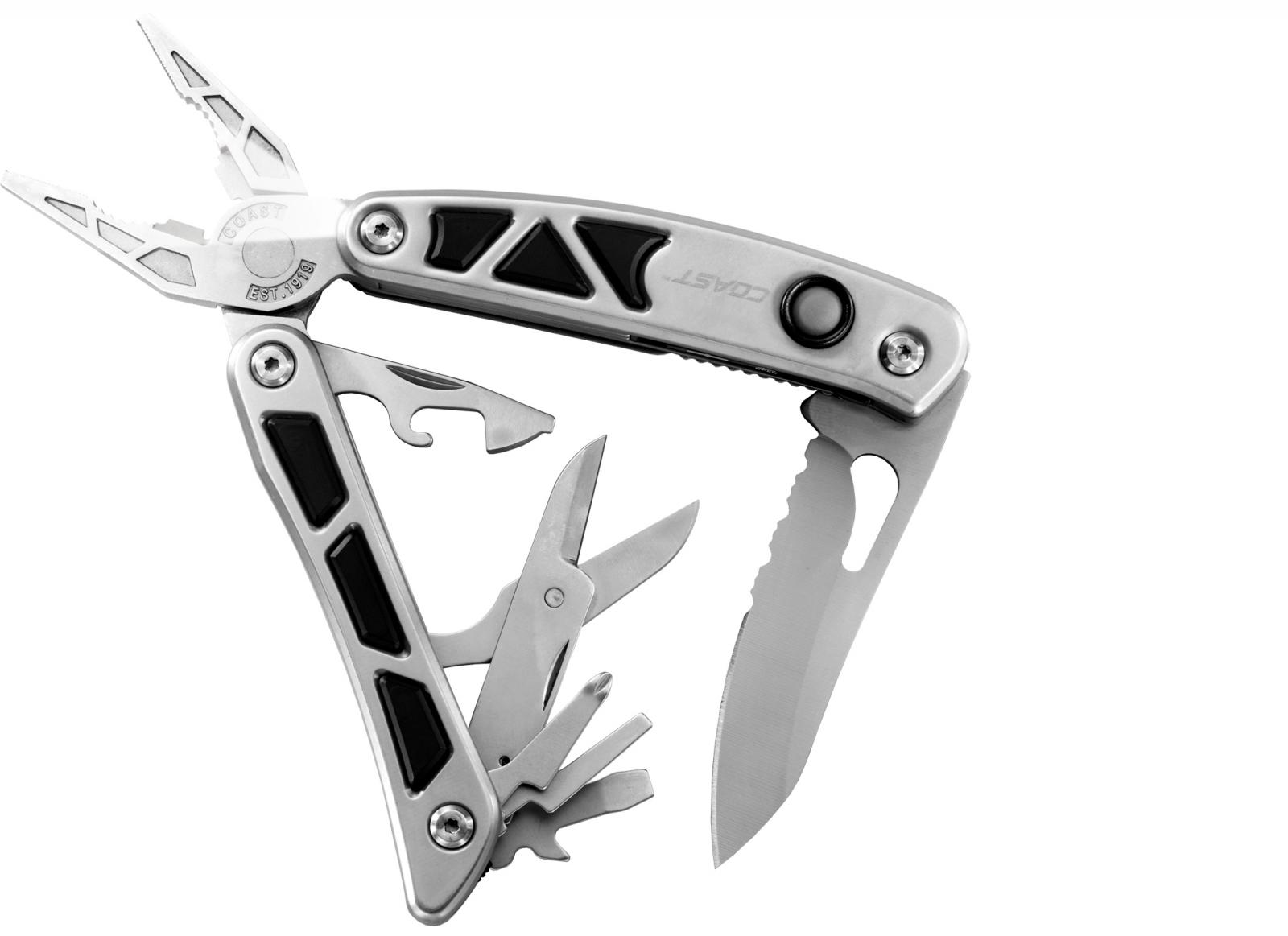 Multiverktyget Coast LED 150 är fullt med smarta funktioner. En LED-lampa är placerad längst fram så att du kan lysa upp det du jobbar med. Det finns även en LED-lampa bakåt. I övrigt har verktyget avbitartång, kabelskalare, stort knivblad i rostfritt stål med delvis tandat blad, tång, sax, tre skruvmejslar, stjärnskruvmejsel samt kapsyl- och konservöppnare. Handtaget har gummering för bättre grepp. Pris ca 499 kr, www.swtab.se