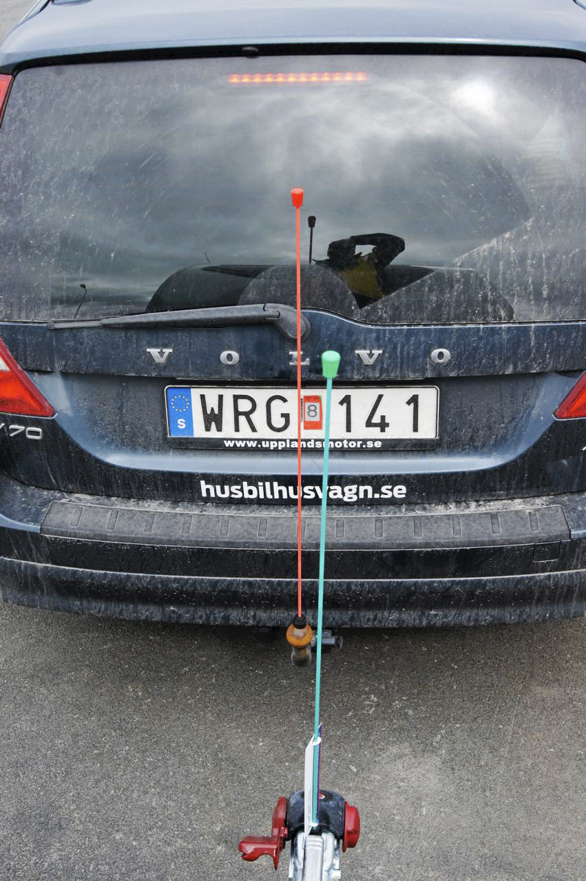 3. Kontrollera att du ser bägge pinnarna genom bakrutan när du backar.
