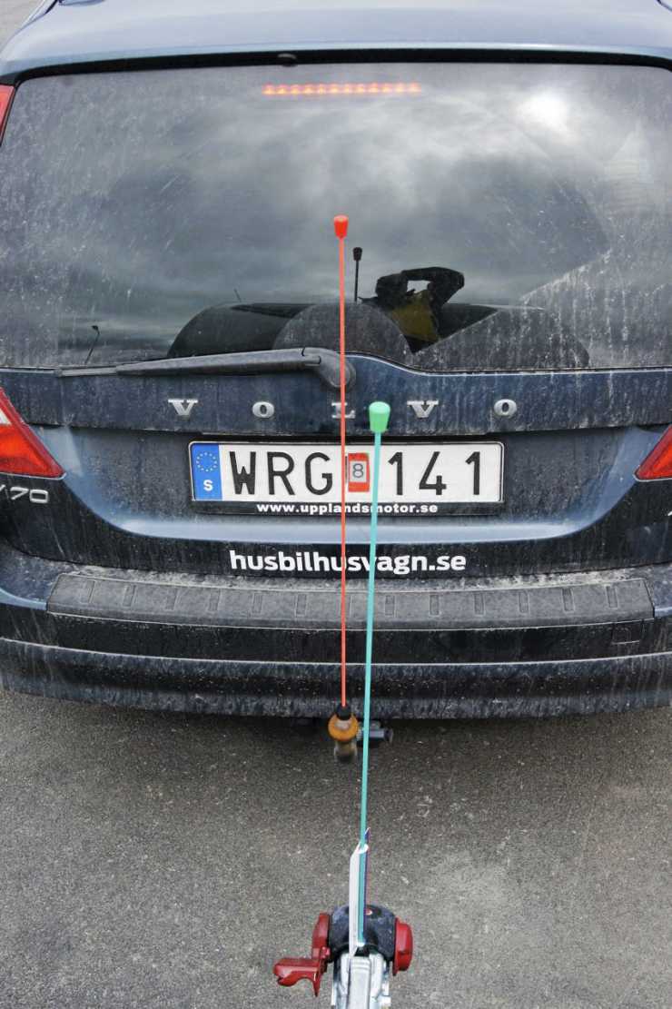 Produkten består av två meterlånga pinnar. Den ena fäster man på dragets handske och den andra på dragkulan. När man sedan backar ska de två stå i linje i varandra.