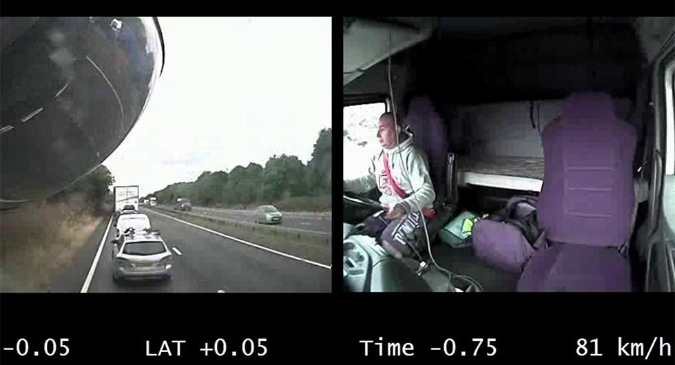 Chauffören hävdade först att bromsarna på lastbilen slutat att fungera, men två kameror i bilen visar att han i över en kilometer tittade på sin telefon i stället för att ha ögonen på vägen. Sekunden innan olyckan tittar han upp, men då är det för sent. Mindre än en timnme innan olyckan hade han dessutom skrivit på ett avtal med sin arbetsgivare där han lovade att inte använda telefonen bakom ratten.