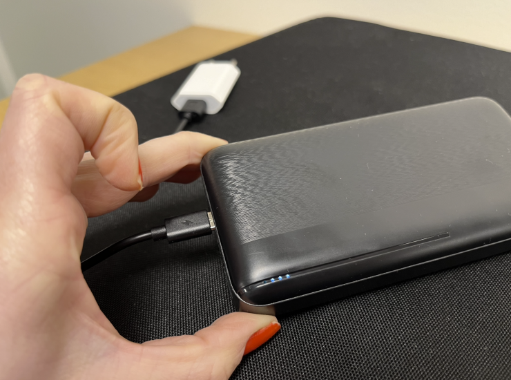 Något som tyvärr saknas är information på batteriet om vilka uttag på som är input respektive output. Totalt finns fyra uttag (2 usb-a, 1 usb-c och 1 iphone-lightning-uttag). Det gör att vi testar lite olika för att ladda batteriet, men kontentan är att laddningen tar tid. Enligt säljaren är uppskattad laddtid cirka 8 h. Under vårt test tar det lite längre tid än så. Summa summarum tror vi att dynan blir mycket uppskattad av användarna när kylan smyger sig på om kvällarna men man vill sitta kvar ute.