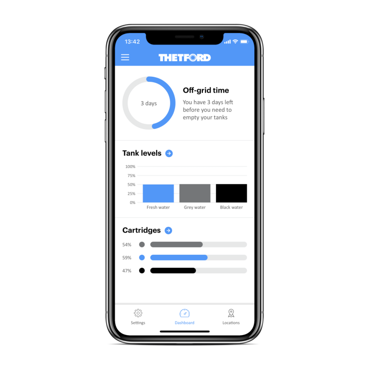 Med iNDUS kommer Thetford med en betydande förändring som innebär cirka sju dagar mellan tömningarna vilka dessutom blir betydligt enklare och mer hygieniska. Kemvätskan doseras automatiskt i exakt den mängd som behövs och en stor del av färskvattnet sparas genom återanvändning av gråvatten och dessutom stöds allt av en app som ger en fullständig översikt i realtid.