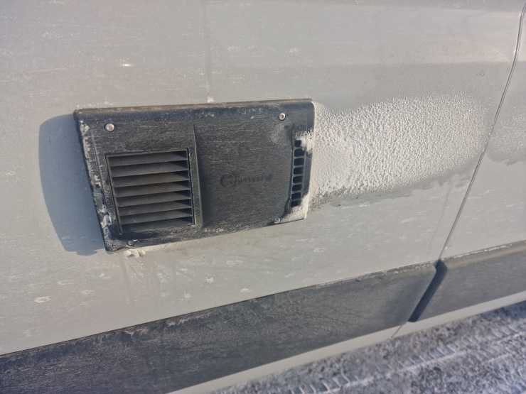 Jag får nu varna känsliga läsare för mina vilda spekulationer, men jag misstänker att en ledning som löper från husbilens högra och över till den vänstra sidan, alltså under mittgångens golv, kan ha frusit. Och möjligen till kökskranen. Eller kanske nära tryckvattenpumpen.