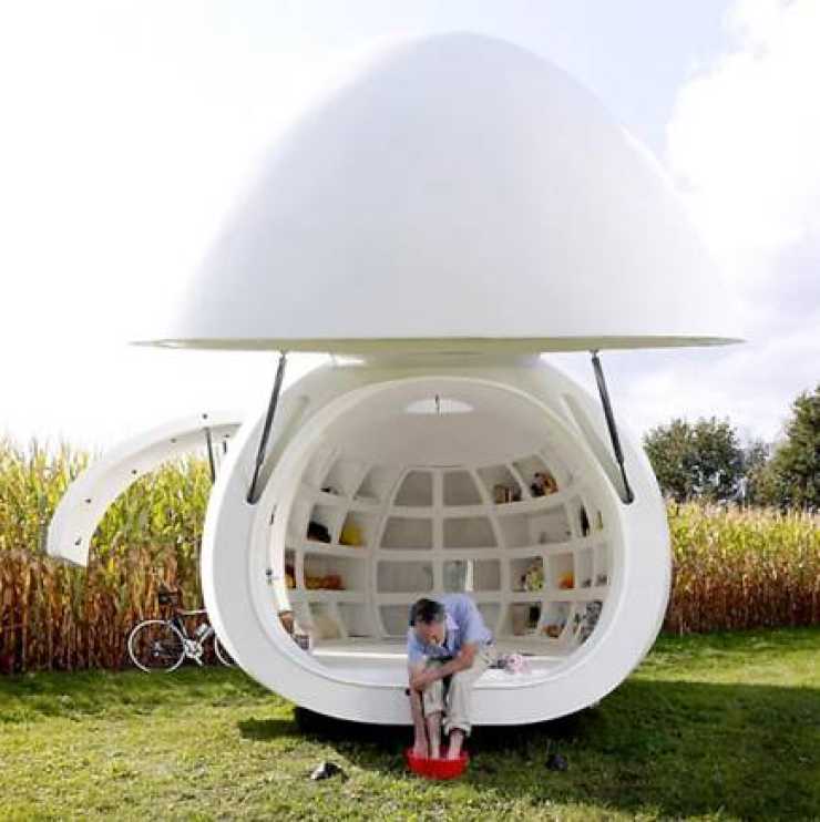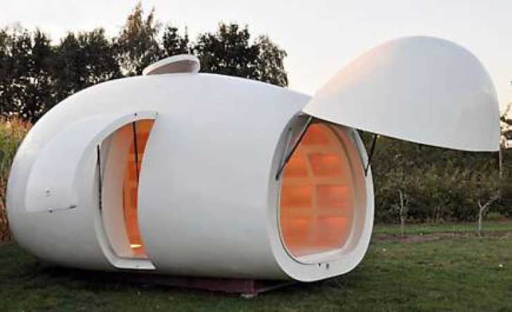 Den här designade boendebubblan är gjord av den belgiska arkitektfirman dmvA och kallas blob VB3. Tyvärr har den inga hjul men form och storlek gör att den borde passa som husvagn.
