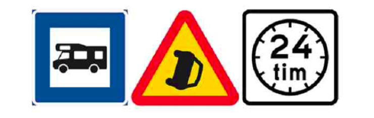 Transportstyrelsen har även tagit fram ett nytt upplysningsmärke för uppställningsplats för husbilar; H28 Husbilsplats. I dag finns endast en allmän skylt för camping- eller husvagnsplatser. Det nya märket gör det möjligt att utmärka att en campingplats bara erbjuder platser för husbilar. Det införs också en symbol för personbil klass II. Vi har sökt Transportstyrelsen för definitionerna för dessa trafikmärken och återkommer snarast med dessa.