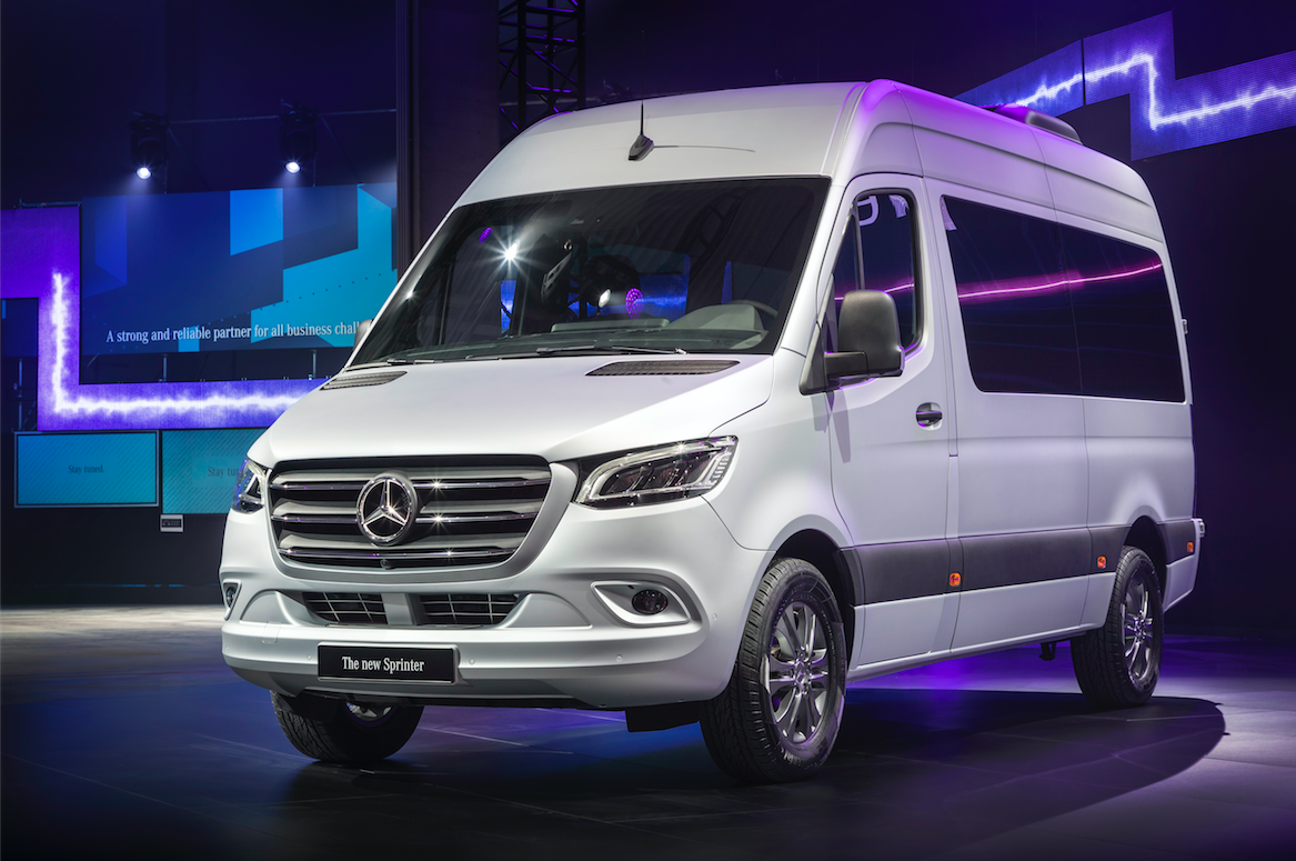 Sprinter är i grunden en transportbil och det är i den skepnaden fordonen visades upp. För husbilsmarknaden torde de tre 2,2-litersmotorerna vara aktuella och de har effekter på 114, 143 eller 163 hästkrafter samt en för husbilar unik 177 hästkraftersversion och är tekniskt identiska oavsett om modellen har fram- eller bakhjulsdrift. De framhjulsdrivna får ett chassi på mellan 3 och 4,1 ton och ska ha två växellådsalternativ, manuell sexväxlad eller niostegsautomat. De bak- och fyrhjulsdrivna har chassin mellan 3 och 5,5 ton och dessa får en sjustegsautomat. Lastförmågan i en transportbil uppges ökas med 50 kilo för den framhjulsdrivna versionen och i stället för dubbla bakhjul kan nu Sprinter fås med ”Super Single tyres” på totalvikter upp till fem ton vilket innebär att bredden mellan hjulhusen ökar med mer än 13 cm till 123 cm. Det tål att tilläggas att husbilsfabrikanterna väljer version varför det inte på rak arm går att säga vilken teknik respektive fabrikant kommer att använda sig av.