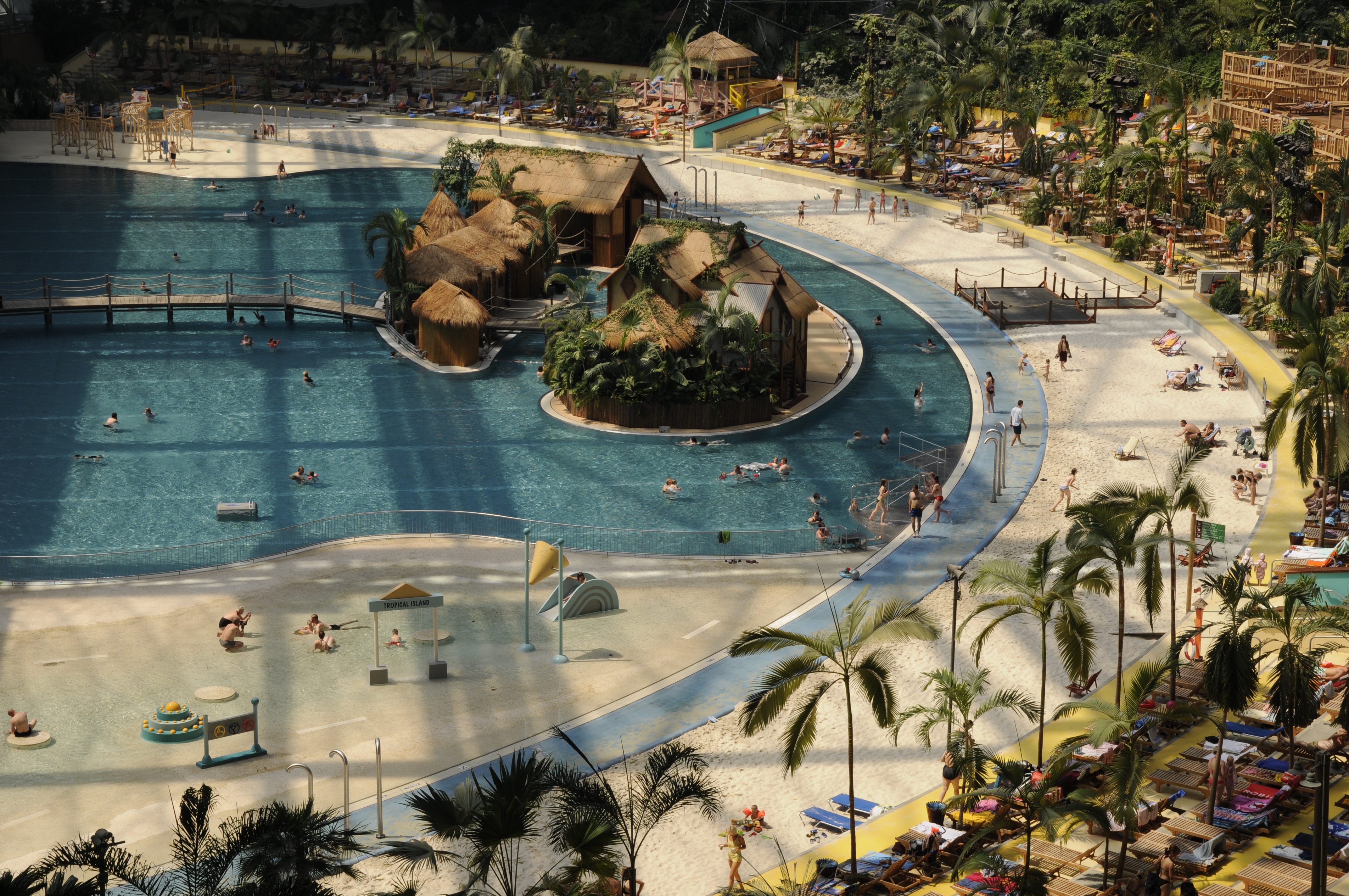 Det finns två större badsjöar, eller pooler. Den största heter Südsee (Söderhavet) och den har en 200 meter lång sandstrand. Längs väggen löper bilden av en himmel och särskilt på kvällen är det en härlig känsla att simma mot ”horisonten”. I Südsee finns också en ö som fungerar som scen för galashowen som startar varje kväll klockan 19. Här bjuds på akrobatik på hög nivå och det kostar inget extra att titta på showen. När det mörknar på kvällen sjunger syrsorna bland träd och buskar. Det är egentligen stämningshöjande högtalare kamouflerade till stenbumlingar som spelar upp sången.