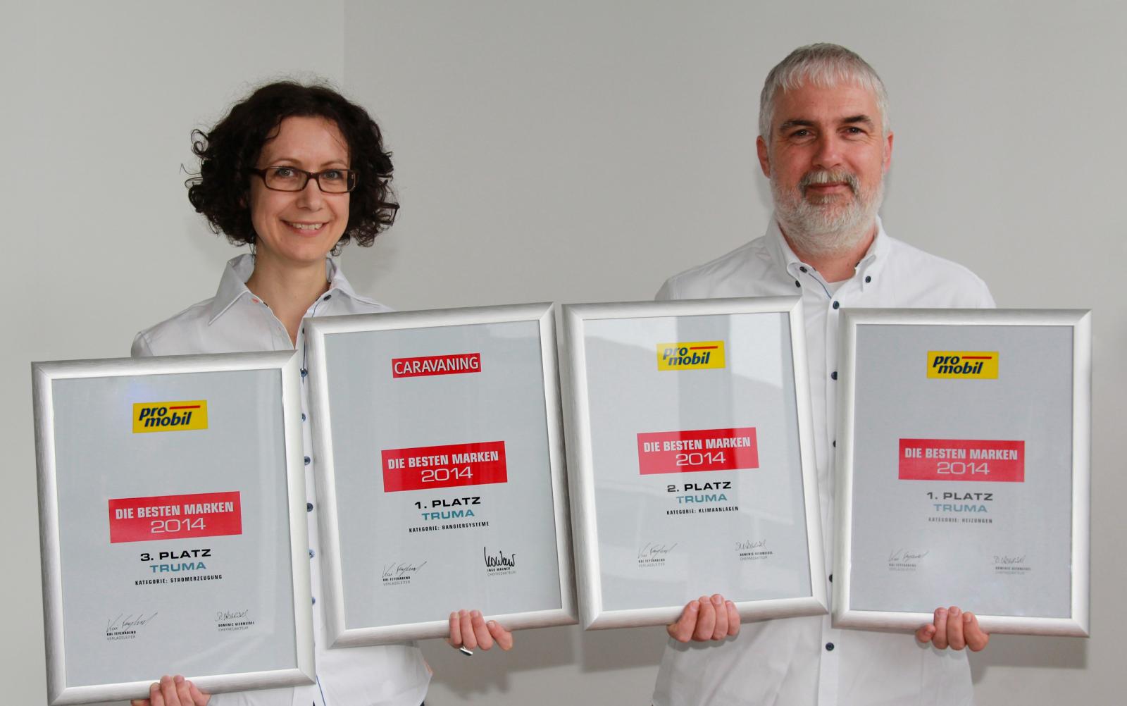 Truma fick en bra start på det nya året då det offentliggjordes att de vann läsarnas val av "Bästa märke 2014" i promobil/Caravaning i fyra klasser. De båda facktidskrifterna undersöker varje år vilka som är branschens mest populära tillbehörsmärken.
