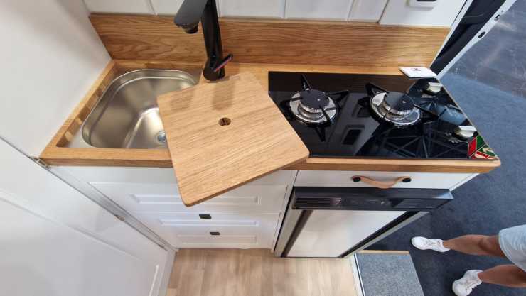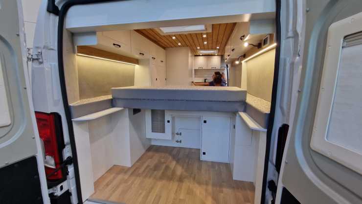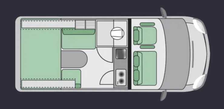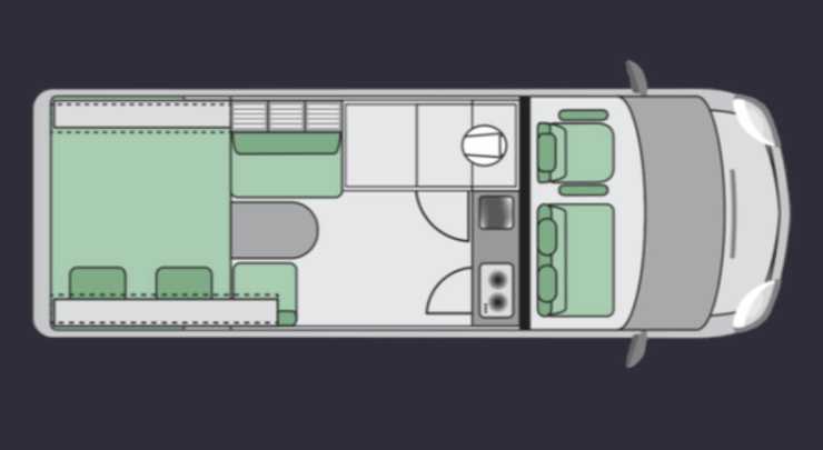 Utan toalett mitt i bilen slipper man den trånga mittgången. Detta ihop med avsaknaden av bältad tvåsitssoffa bak gör att bodelen känns luftigare än vanligt i plåtisar. En annan fördel är att det blir lättare att hålla värmen i boendeutrymmet. Kanske slipper man en del skrammel från bodelen under färd och sist men inte minst ger lastväggen extra säkerhet under färd. (Kanske också inbrottssäkerhet)