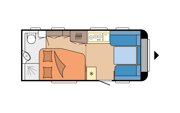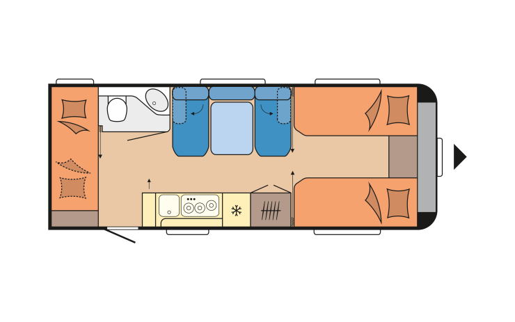 Serien De Luxe har 14 olika planlösningar som passar både par och familjer. Här finns bland annat De Luxe 515 UHK med nedsänkbar taksäng över sittgruppen som gör den ovanligt mångsidig.