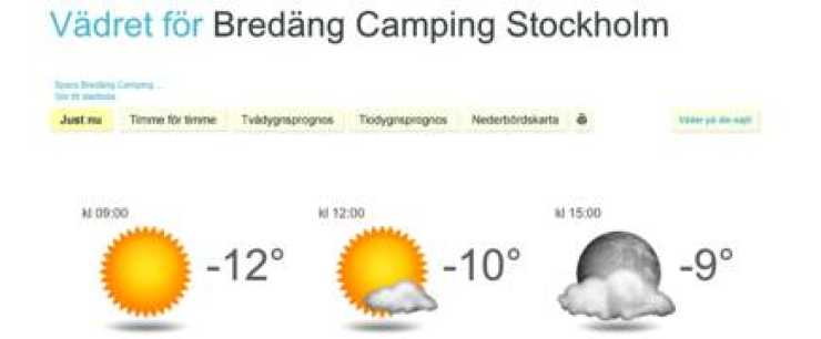 Klicka på väderbilden nedan så kommer du till hemsidan, välj därefter: "Vägväder" En liknande funktion som denna fast med en mängd campingplatser eller golfbanor hittar du via länkarna längst ned.
