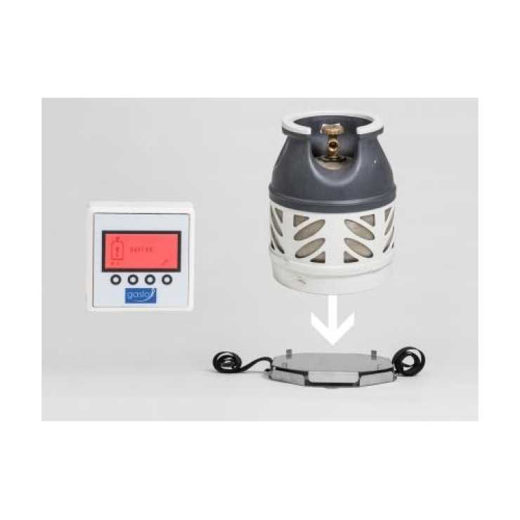 Nivåindikator för gasolflaskor bestående av en våg kopplad till en display. Flaskan placeras på vågen och fästes med ett band. På displayen finns en symbol som visar gasolnivån. När nivån går under 10% visar displayen gult och när den går under 5% lyser det rött på skärmen. Displayen kopplas till 12V.