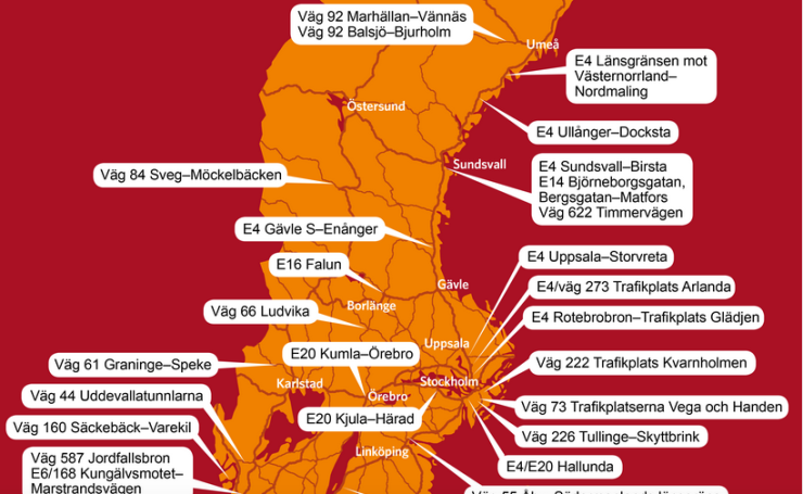 Dessutom finns en kartsammanställning med de vägarbeten som påverkar dig som trafikant i högre grad i sommar. Även sommarens mest trafikpåverkande vägarbeten i respektive län redovisas. Den länsvisa förteckningen redovisar inte allt som görs på vägarna i sommar, Trafikverket utför ytterligare arbeten.