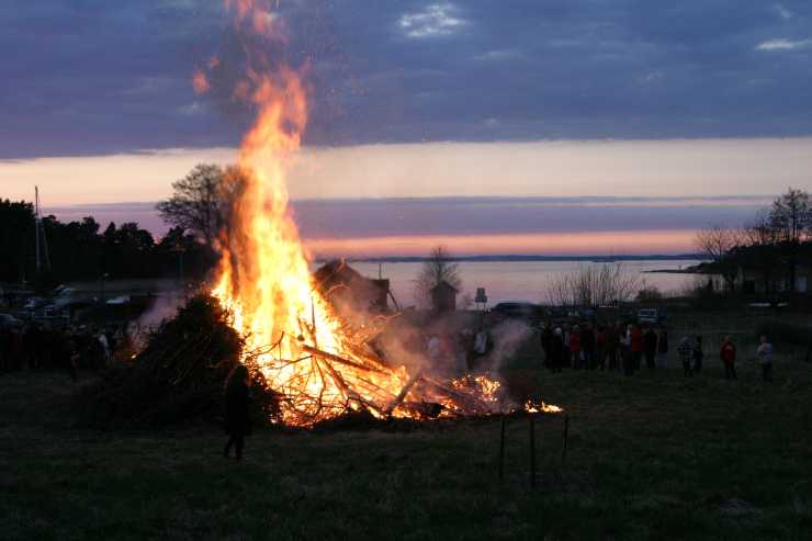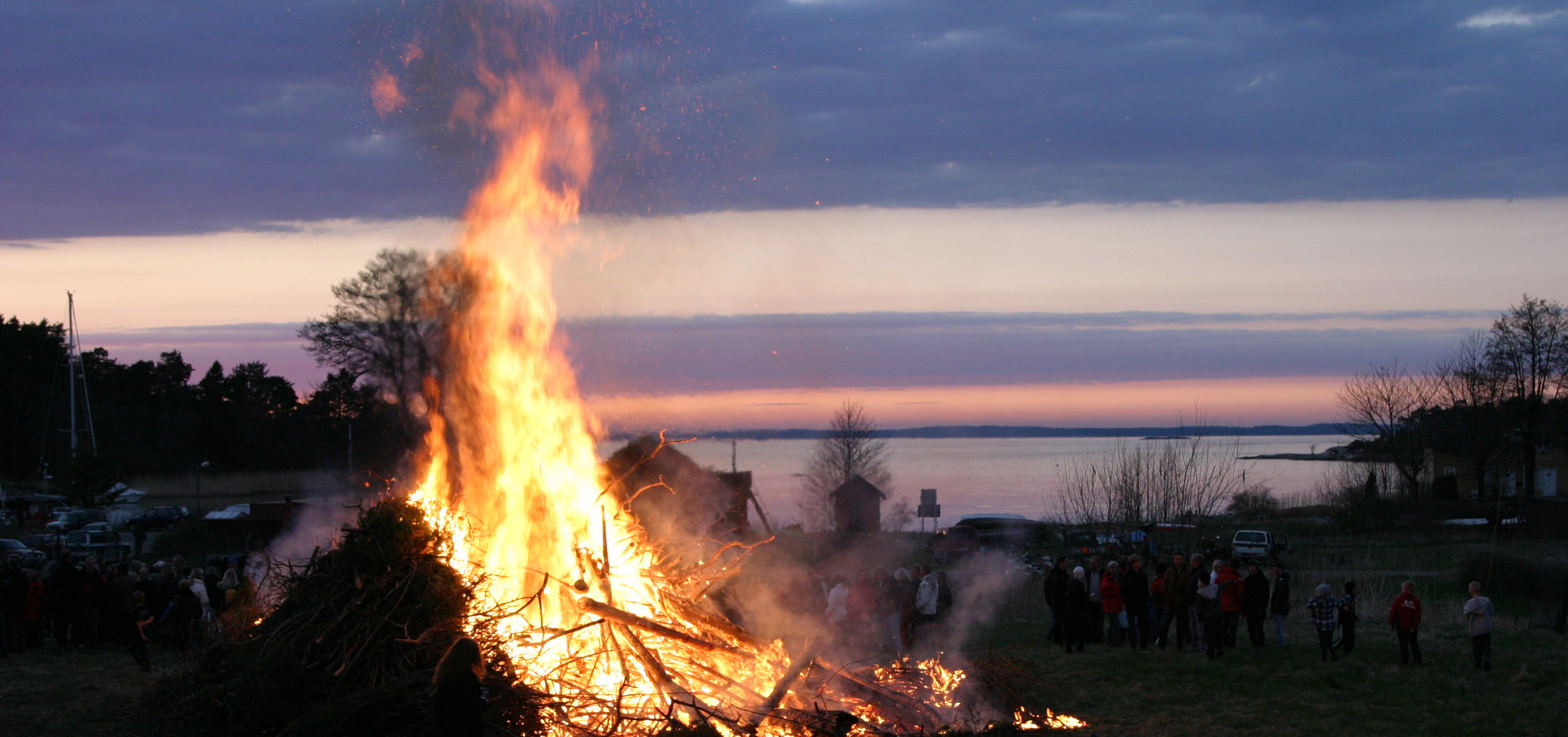 På Utö i Stockholms skärgård firas våren in med valborgseld och körsång den 30 april.