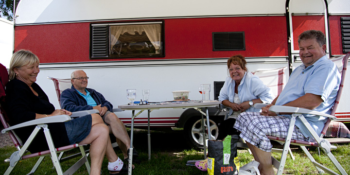 Husbil & Husvagns redaktion gav sig ut för att se vart ni semestrar någonstans. Vi träffade ett glatt gäng bestående av Kersti,Sven-Erik,Anki och Kenneth. De var i full färd att grilla när vi kom förbi.