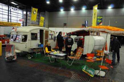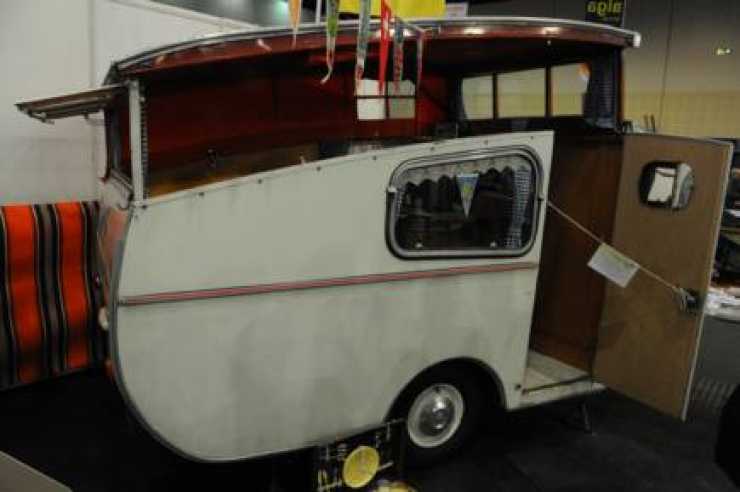 Det var tyska Camping-Oldie Club som ställde ut vagnarna på Classic Motorshow i Bremen. I en mysig monter dekorerad med campingmöbler från 1960-talet visade man dessa två intressanta husvagnar.