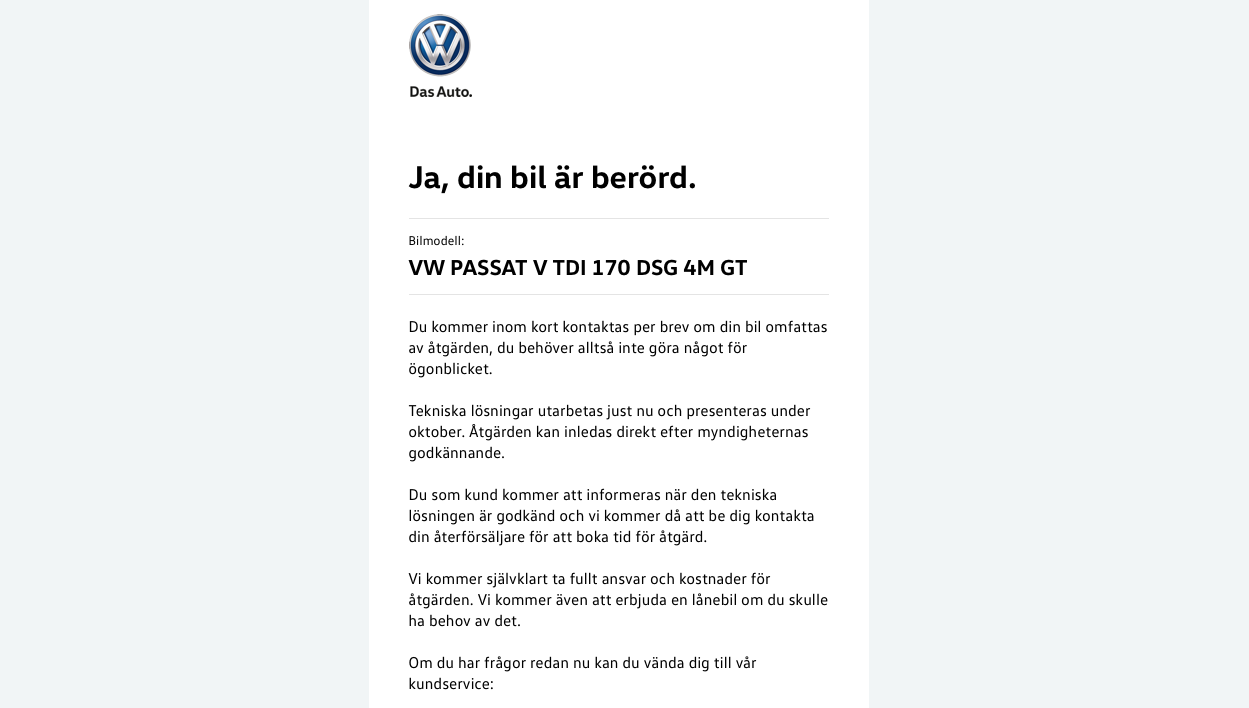 Många har valt Volkswagen som dragbil till sin husvagn och så även vi på tidningen Husbil & Husvagn. Här kan du kontrollera med hjälp av registreringsnumret om din bil är en av de många berörda: https://online.volkswagen.se/dieselcarcheck/