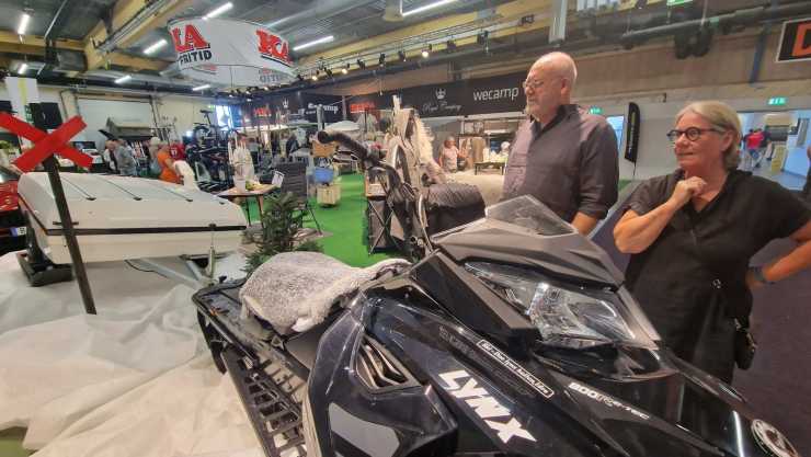 Roger och Mia Hahn från Linköping kör en helintegrerad Bürstner Aviano från 2012. De fastnade för filmen som visas i Kama Fritids monter. I filmen ser man en Lynx snöskoter som drar en Camp-let tältvagn.