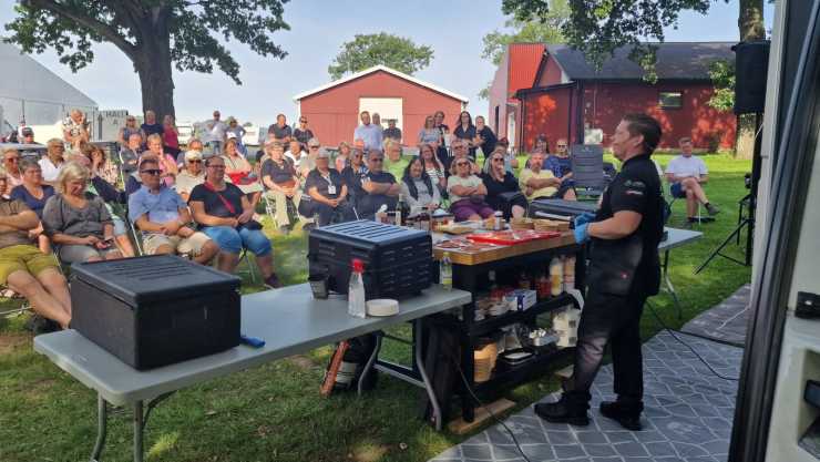 Grillmästaren Pelle Bring håller kurs i BBQ och grillning i Caravan Clubs utemonter. Härlig miljö att sitta ner och lyssna på grilltips. Oerhört lärorikt och rekommenderas till den som gillar att laga mat i campingköket!