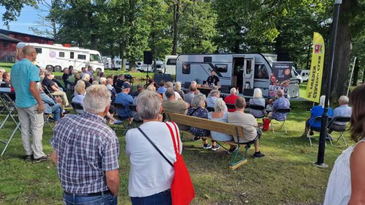 – Faktiskt köpte vi en husbil här på mässan en gång, säger Stig-Arne. Men tyvärr missade vi att kolla en viktig sak, så vi bytte faktiskt bort den en kort tid senare, säger Stig-Arne.