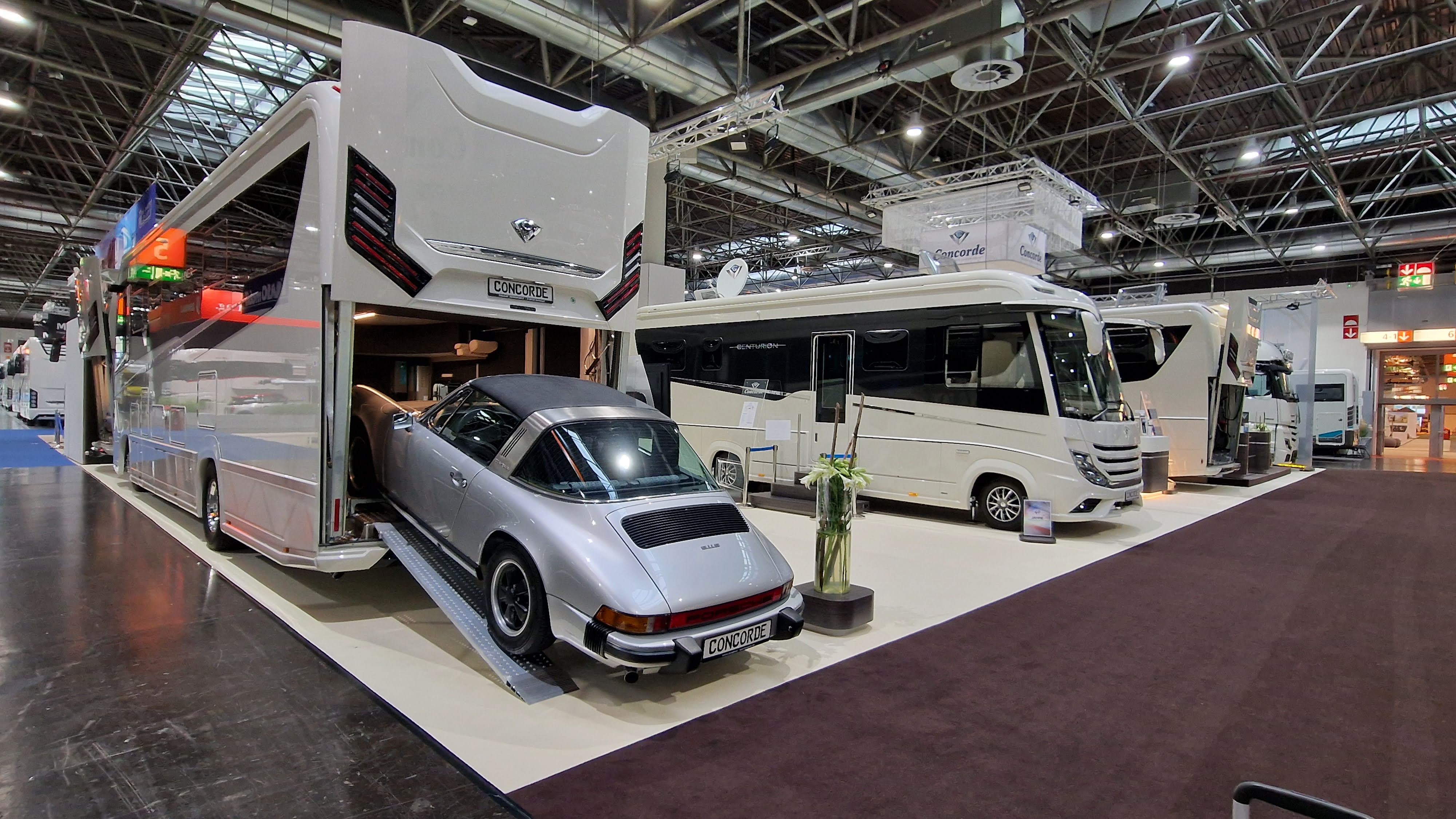 Bilen dras in i Concorde-linerns garage på Caravan Salon 2022.