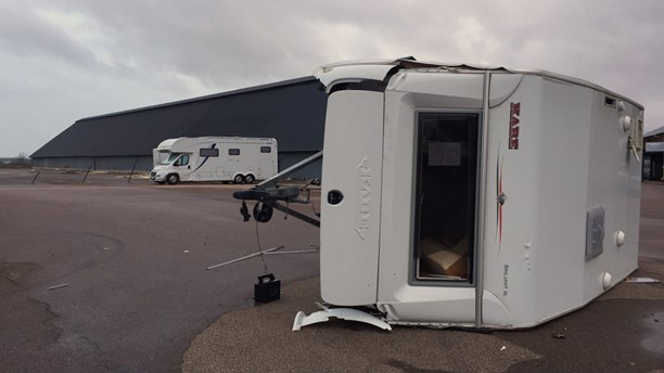 Zäta Caravan i Genevad drabbades hårt av nattens storm Gorm som drog fram över södra Sverige.