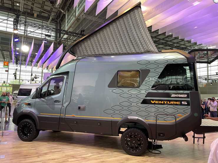 Hymer Venture S har ingen missat. Terränghusbilen med pneumatiskt popup-tak och bakdel med balkong och Infinity screen, rundade fönster som ger 180 graders utsikt.
