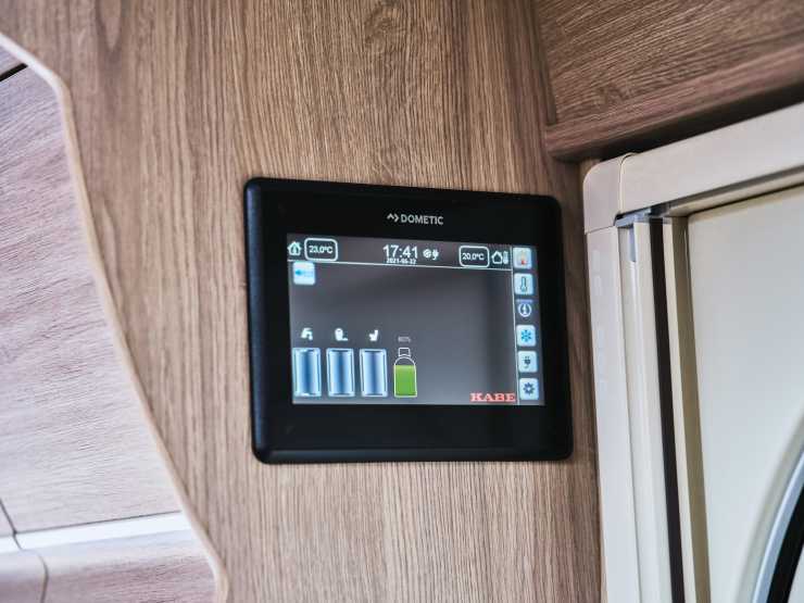 Kabe Smart Level har tre funktioner kopplade till manöverpanelen Smart D. Gasolmängd, däcktryck och fordonets lutning. Standard i serien Imperial. Tillval i Novum, Royal, Crown.