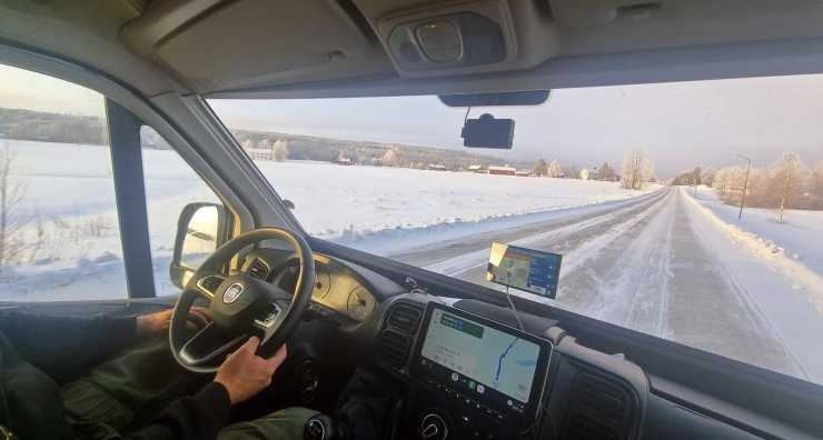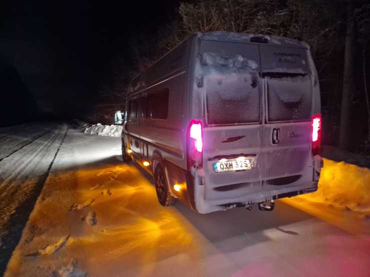 + Den förträffliga värmepannan (Truma Combi 6D). Och litiumbatteriet i kombination med dieselvärmepannan är ett otroligt lyft mot tidigare husbilar vi haft! Det kändes som att vi kunde bo i en varm plåtis i evigheter – utan elsladd och ständiga gasolflaskbyten. Lite egenisolering med liggunderlag hjälpte förstås till. Vårt batteri var som lägst nere på 55% efter en längre natt med hög värme invändigt (ca +21°C) och ca -30°C utomhus. Då hade vi även använt elektrisk vattenkokare till kaffet och både belysning och tv.