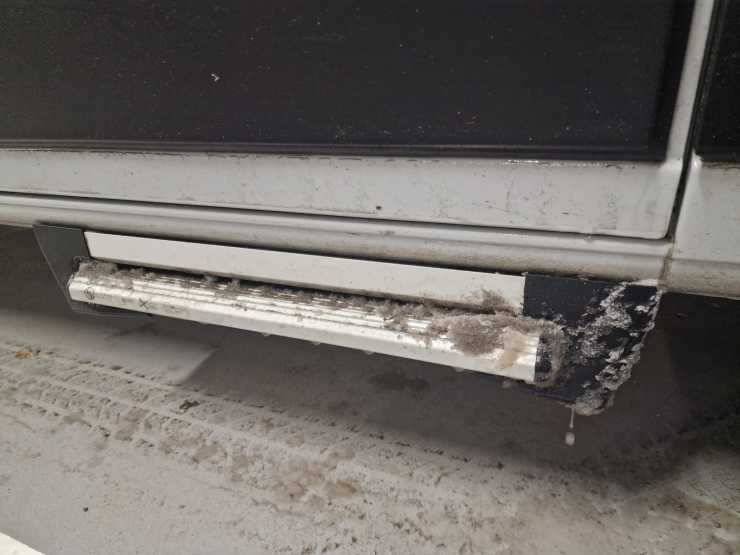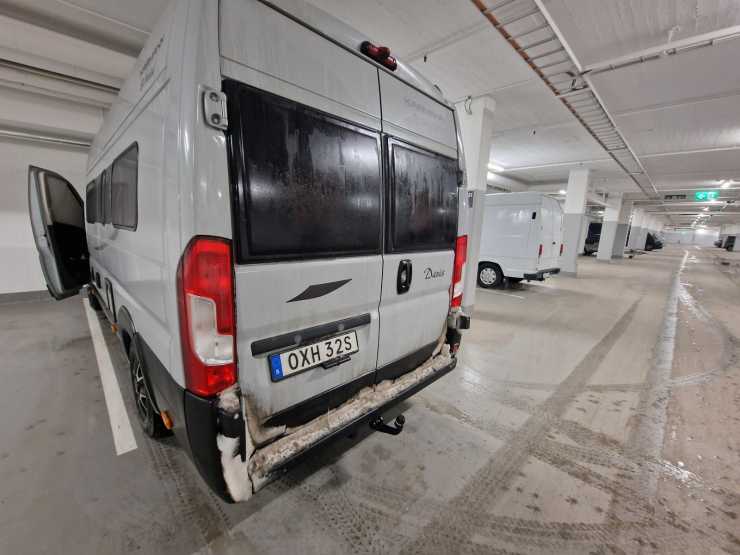 Därför är lösa dunkar och nyttjande av duschar i servicehus att rekommendera. Vi extraisolerade både bakdörrar och skjutdörr. Istället nyttjade vi hyttdörrarna för in och utgång vilket också gjorde att vi slapp smuts i bodelen. Tofflor väntade mellan framstolarna och ytterskor lämnades vid hyttdörrarna.
