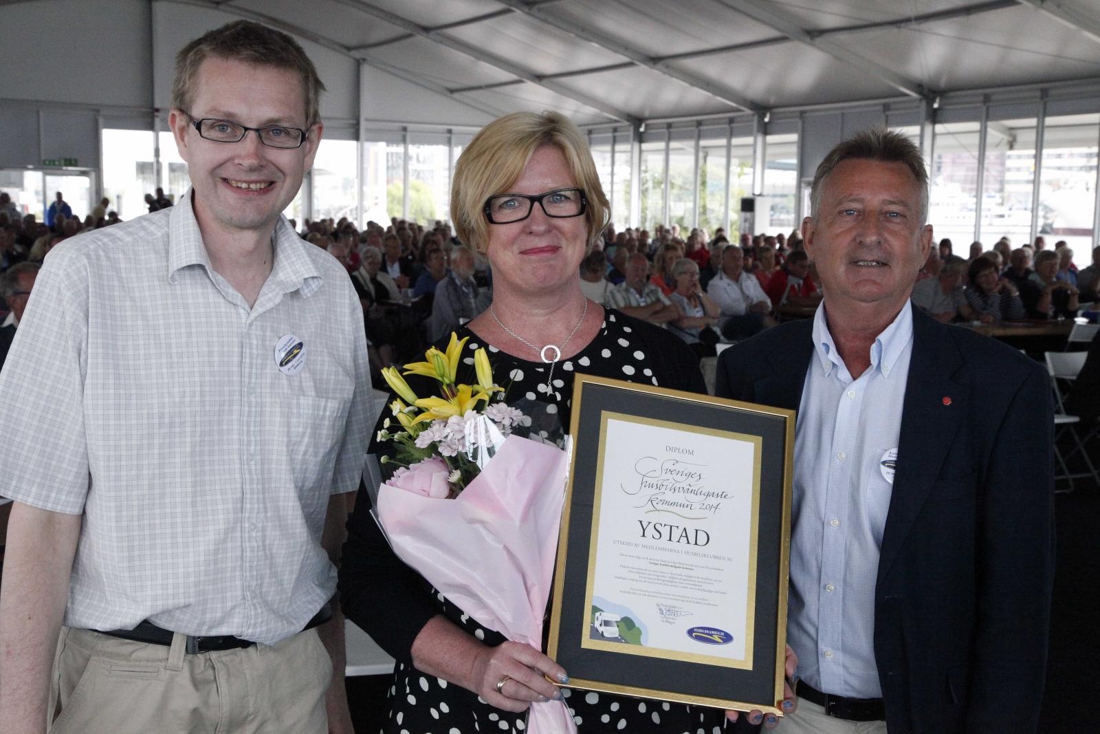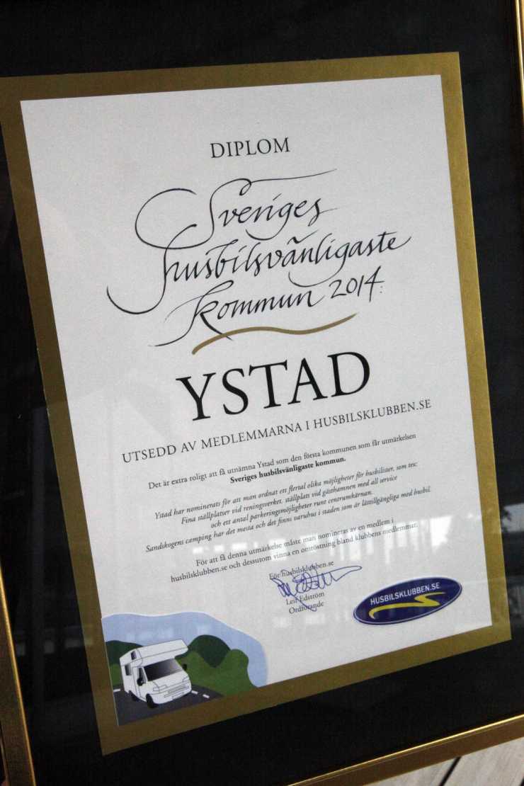 För första gången har Husbilsklubben.se nu utsett Sveriges husbilsvänligaste kommun. Detta genom att först nomineras av en medlem och därefter genom att vinna en omröstning bland klubbens medlemmar. Ystad vann utmärkelsen och motiveringen lyder: