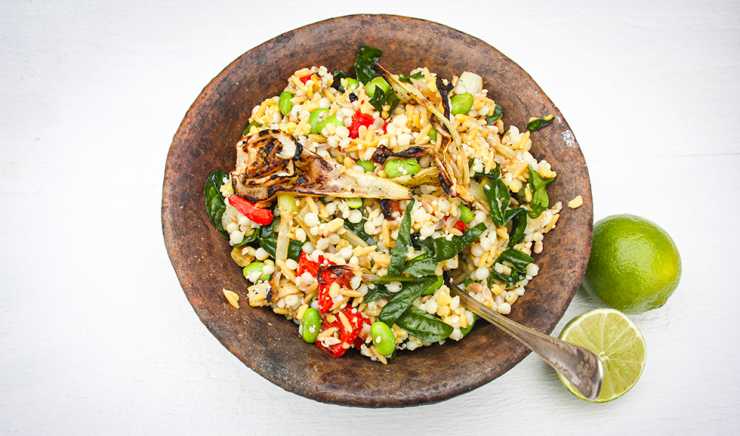 Låt rinna av och låt svalna. Dela paprikan och fänkålen (salta och peppra) och lägg på grillen tills de får färg, skär dem därefter i mindre bitar som passar i din couscoussallad.