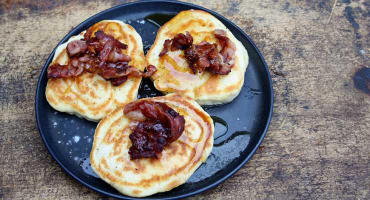 Servera med knaperstekt bacon och lönnsirap, farligt gott!
