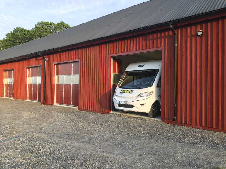 Ett låst, uppvärmt, dammfritt och larmat garage som ständigt är torrt och håller 15–20 grader utan risk för nedkylning. Eluttag finns så fordonet kan stå på 230V.