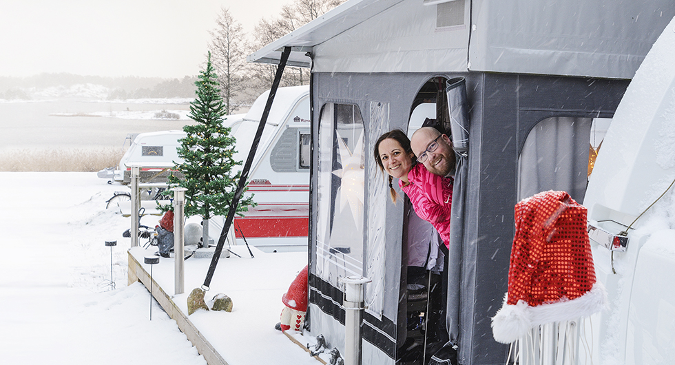 När naturen bäddas in i ett fluffigt lager av snö, och det är riktigt kallt ute, menar många att livet inne i ett fritidsfordon är som allra bäst. Fredrik och Lisa Eriksmyr från Norrköping tillhör den skaran. Vi har hälsat på dem på KustCamp Ekön utanför Valdemarsvik.