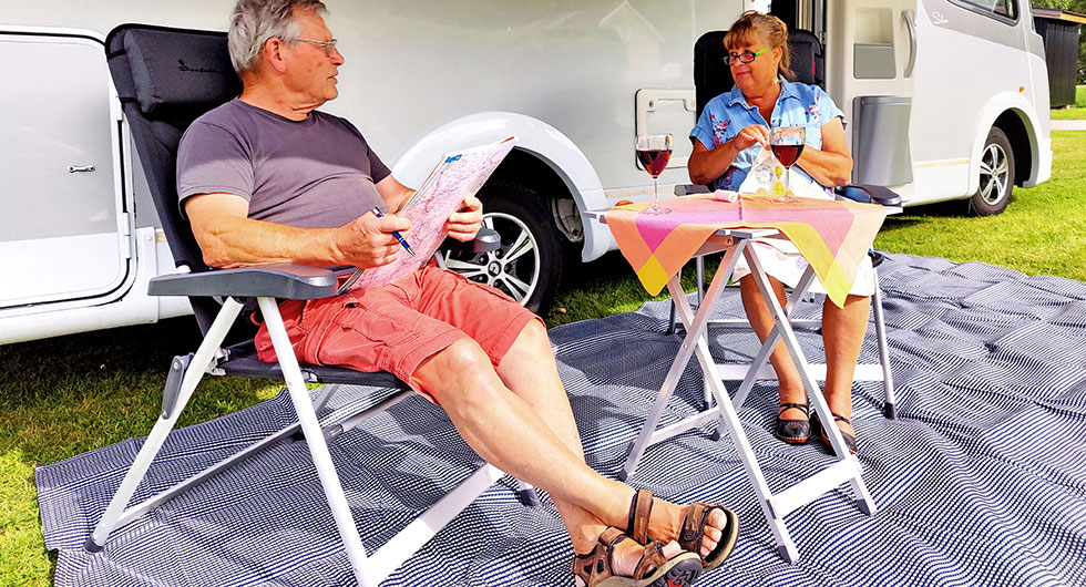 Den ena behöver fara runt i historiska miljöer för att samla stoff till sina bästsäljande romaner, den andre älskar att köra bil. Klart att husbil blev ett lyckat val för Maria Gustavsdotter och Gustaf Ahlsten!