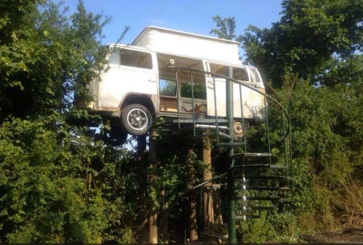 Nej, det är inte så här du ska göra med din husbil. Den är tänkt att köras på väg, annars är risken alldeles för stor för skador på medhavd utrustning och trappan blir alldeles för otymplig att ta med under färd.