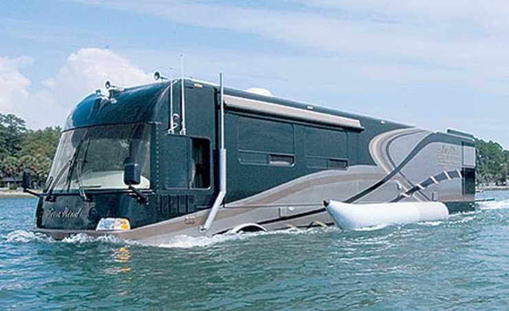Nuförtiden behöver du inte välja mellan husbil och båt. Köp en amfibiehusbil så behöver du inte stanna bara för att stranden dyker upp.