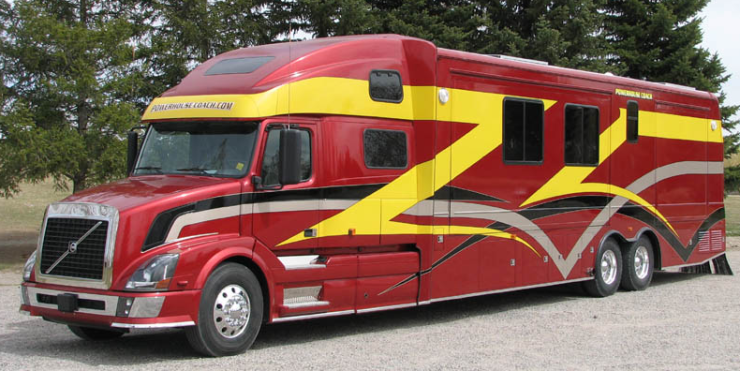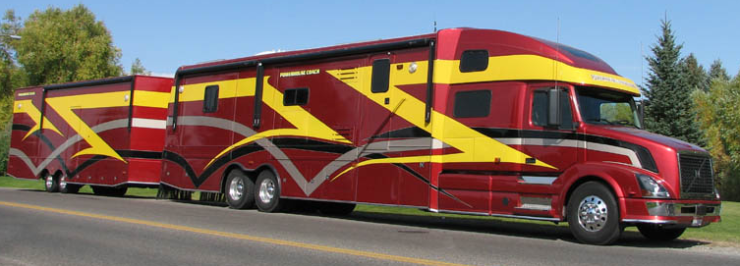 Powerhouse Coach TM i USA bygger husbilar på Volvos amerikanska lastbilar. Deras fordon väcker nog en del uppmärksamhet även i hemlandet och äntligen går det att få med sig alla leksaker i ett och samma fordon.