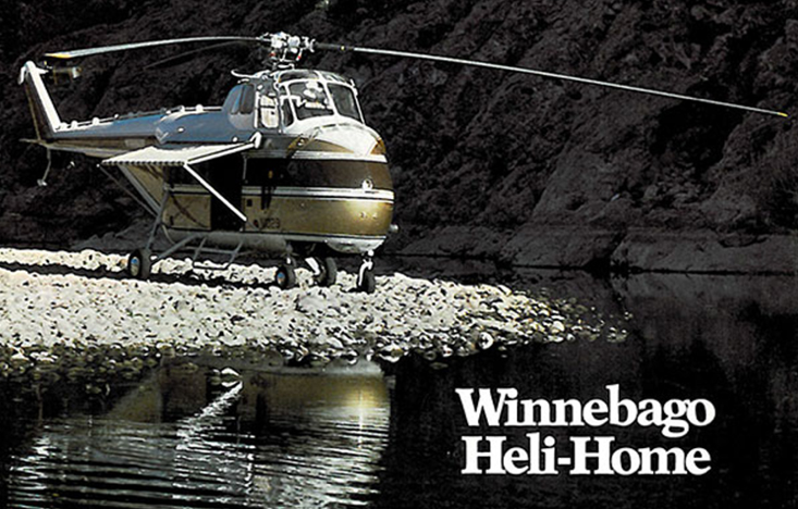 Den flygande husbilen från Winnebago byggdes i åtta exemplar men i dag finns inga kvar. Det kanske är tur med tanke på hur grannarnas förtält skulle se ut efter en landning på campingen.