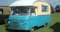 Commer i blått och beige Humor 16 december 2016 Denna härliga husbil kommer från en era då vita husbilar ännu inte slagit igenom. Visst är den charmig? Gasa