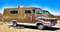 Trist med bara vitt Humor 8 juni 2016 Tycker du bakpartiet på din husbil är onödigt trist kan du alltid göra det lite mer likt ett slagskepp. Visst väcker det uppmärksamhet? Gasa