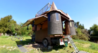 Världens konstigaste husbil Nyheter 10 november 2015 Detta rullande sagoslott är inget som Harry Potter hittat på utan en fullt fungerande husbil byggd av ett fantasifullt par på Nya Zeeland. Kolla in filmklippet när de fäller ut och upp väggar, tak och torn. Här finns till och med badkar på den rymliga takterrassen. Gasa