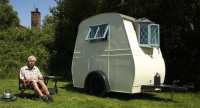 Husvagn för den mindre bilen Humor 28 november 2013 Den här smidiga vagnen lär knappast passera några viktsgränser. Der spatiösa köket används med fördel i det fria och är man inte för lång finns plats att sova. Blyinfattade fönster är dock ett måste. Gasa
