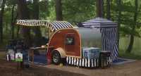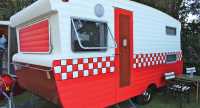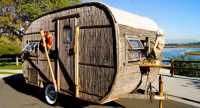 Äldre ovanliga men topprenoverade husvagnar känns som något alldeles extra. I synnerhet den här! Modellen, som byggdes 1936 av ett företag i Los Angeles sägs bara finnas kvar i fyra exemplar. Under den stora depressionen året efter gick företaget i konkurs. Dessvärre har vi inte hittat fabrikatets namn.